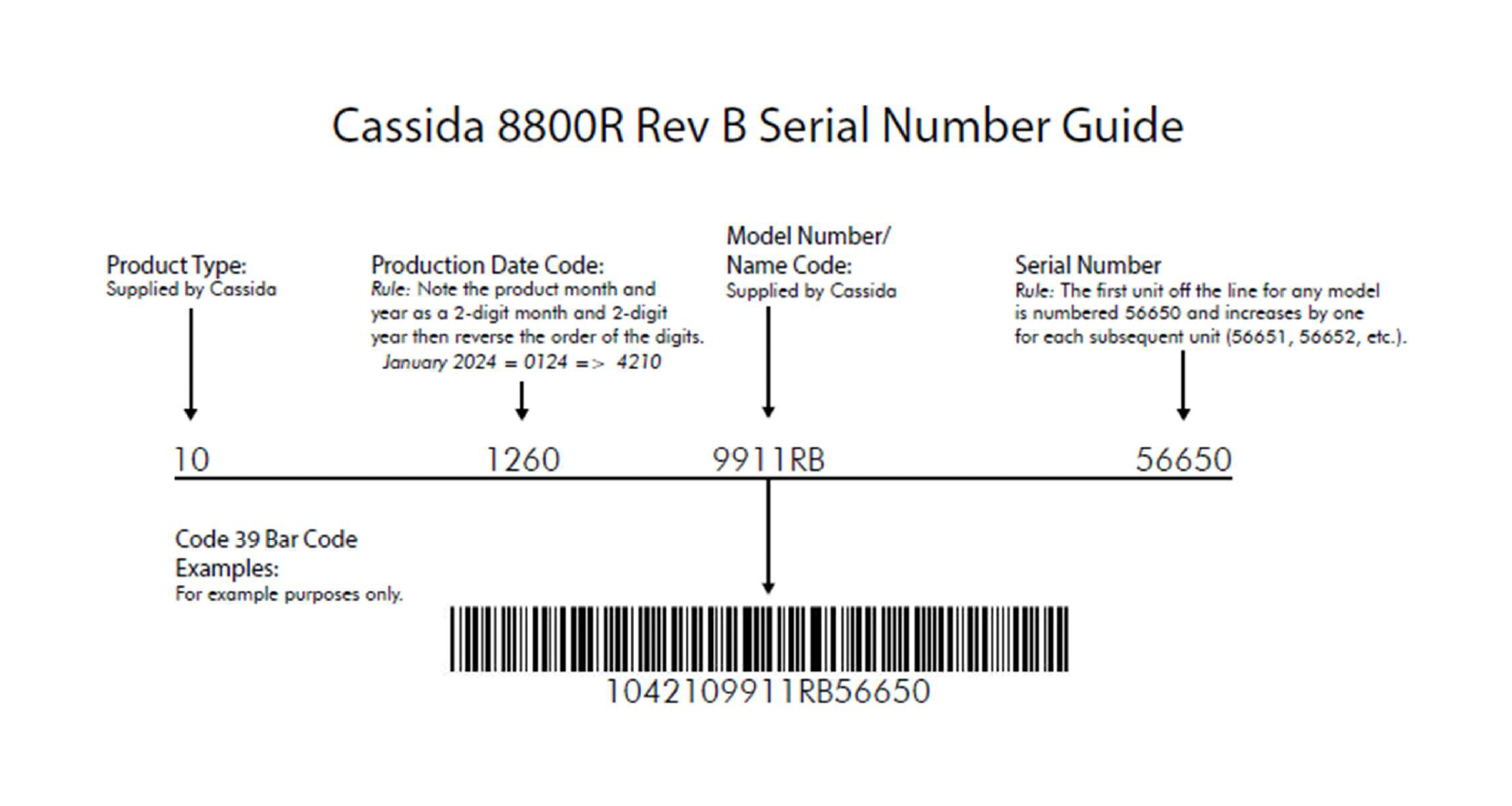 An example serial number is shown below. The format will always be the same, 6 numbers, followed by '9911RB' and ending in 5 numbers: ######9911RB#####